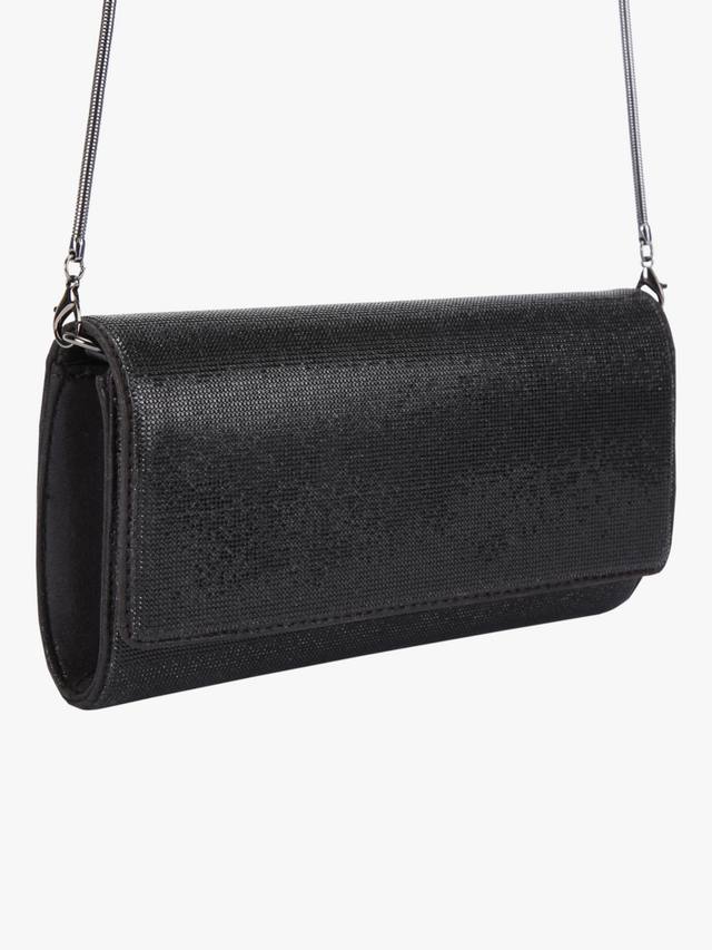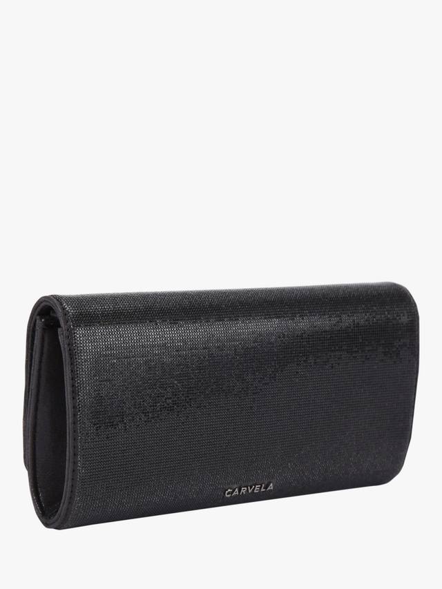Эта спиральная сумочка-клатч изготовлена из ткани с золотистым брендингом на спинке.