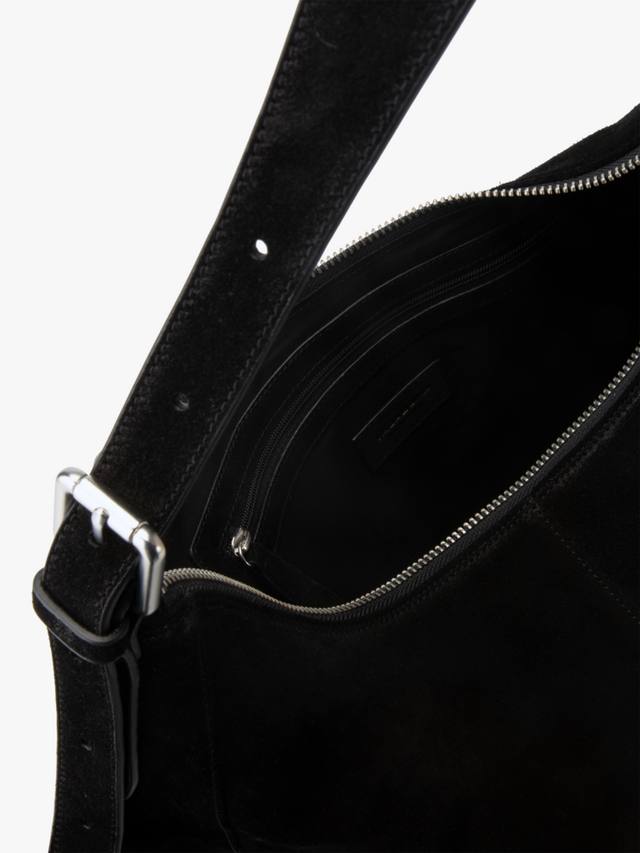Большая минималистичная сумка-тоут от Vagabond. Сумка Hilo выполнена из черной замши и имеет А-образный силуэт. Особенности: регулируемый плечевой ремень, застежка-молния сверху, внутренний карман, серебристые пряжки и текстильная подкладка.