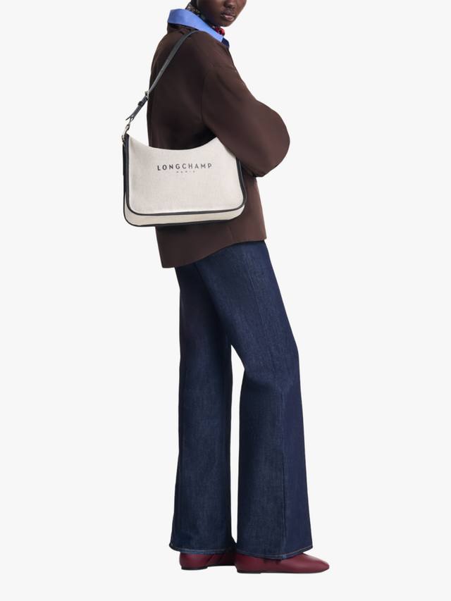 Эта сдержанная, но современная сумка-хобо от Longchamp идеально подходит для повседневного использования. Широкий, съёмный и регулируемый плечевой ремень обеспечивает комфорт, а застёжка-молния надёжно защищает ваши вещи. Изготовленная из хлопкового полотна с крапинками, она легко дополнит любой наряд.