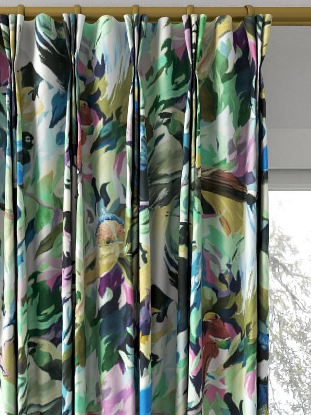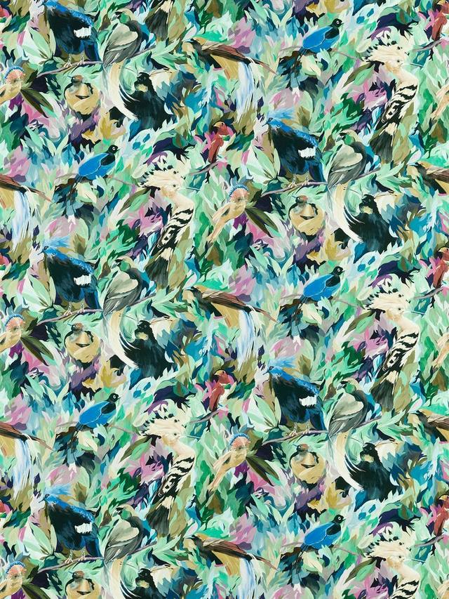Моргните, и вы их пропустите! Великолепные райские птицы танцуют в темноте своего дома в тропических лесах на этой ткани цвета арлекина. Присмотритесь ещё раз — сколько невероятных перьев и хвостовых перьев вы сможете разглядеть? Этот динамичный, но в то же время красочный и маскировочный хлопок двойного назначения — настоящий хит.