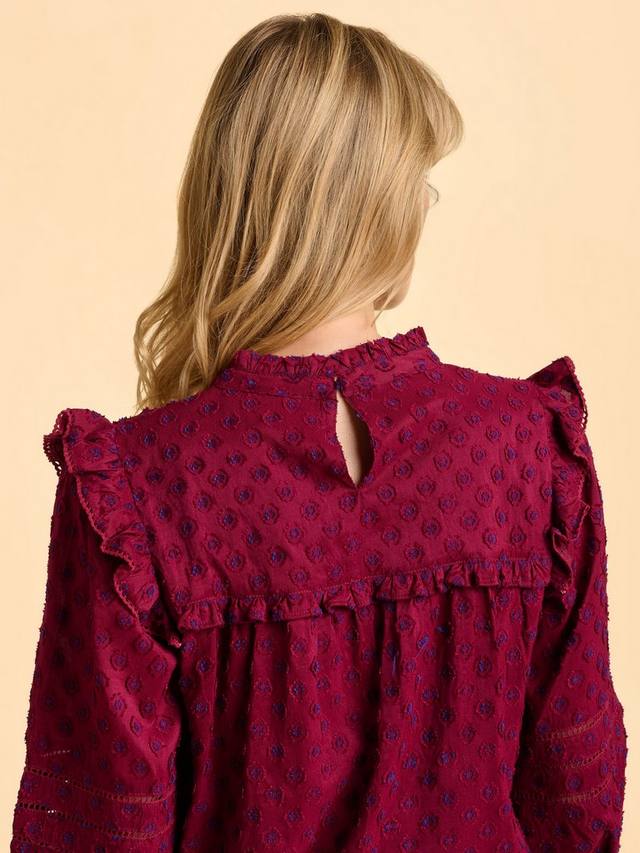 Украсьте сезон в блузке Grace. Мягкая, дышащая ткань кареточного плетения с изящными ажурными вырезами и оборкой на горловине создают женственный, воздушный образ.