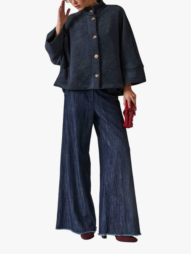 Подчеркните свой стиль с курткой James Lakeland Batwing. Эта куртка свободного кроя из мягкой фактурной ткани отличается высоким воротником, застежкой на пуговицы спереди и элегантными рукавами летучая мышь. Идеально подходит для многослойного образа, легко сочетая его с повседневными и нарядными образами, обеспечивая тепло и элегантность.