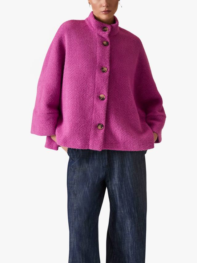 Подчеркните свой стиль с курткой James Lakeland Batwing. Эта куртка свободного кроя из мягкой фактурной ткани отличается высоким воротником, застежкой на пуговицы спереди и элегантными рукавами летучая мышь. Идеально подходит для многослойного образа, легко сочетая его с повседневными и нарядными образами, обеспечивая тепло и элегантность.