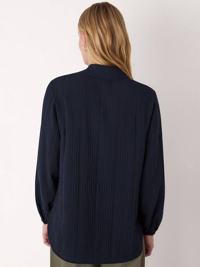 Повседневная рубашка от Whistles. С воротником-стойкой и длинными рукавами, однотонная, легко комбинируется с другими вещами. Достаточно элегантная для работы, достаточно удобная для повседневного ношения.