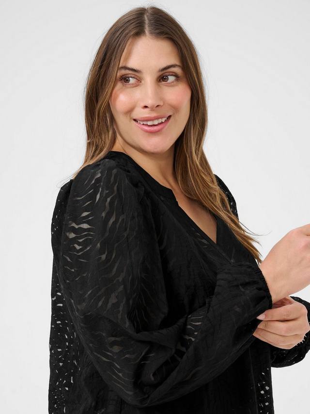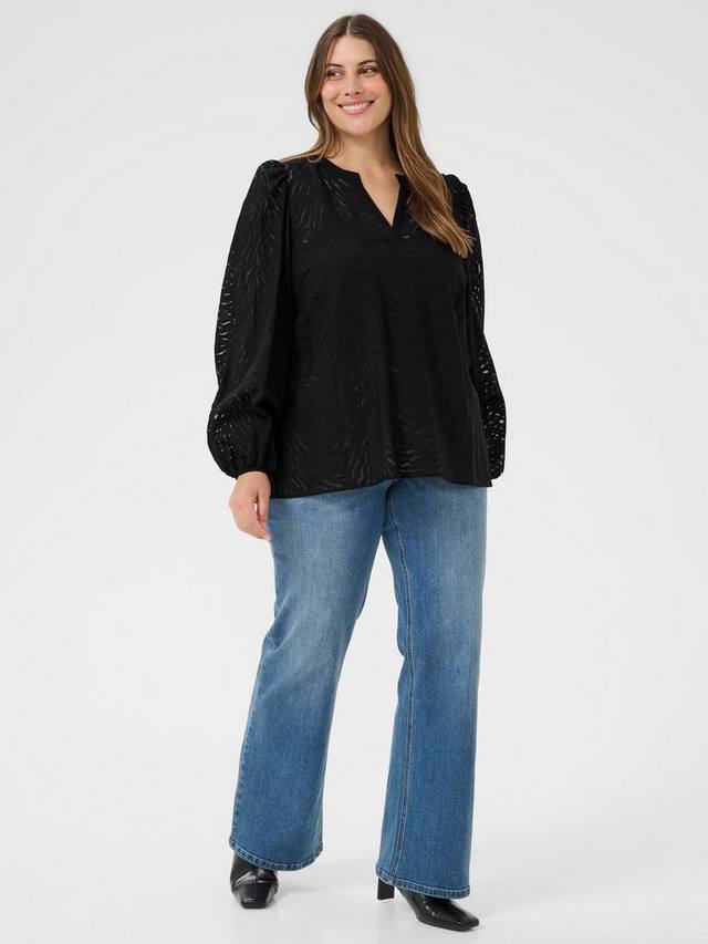 Лёгкая блузка KAFFE Curve с текстурированной отделкой мгновенно подарит вам комфорт и стиль. Свободный V-образный вырез и свободный крой придадут вам уверенности в любых ситуациях, от деловых встреч до свиданий.