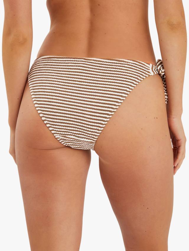 Эти плавки-бикини с нейтральным полосатым узором на фактурной ткани для плавания имеют классический фасон с завязками по бокам. Доступен подходящий топ-бикини.