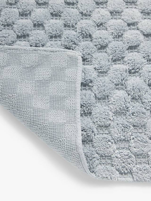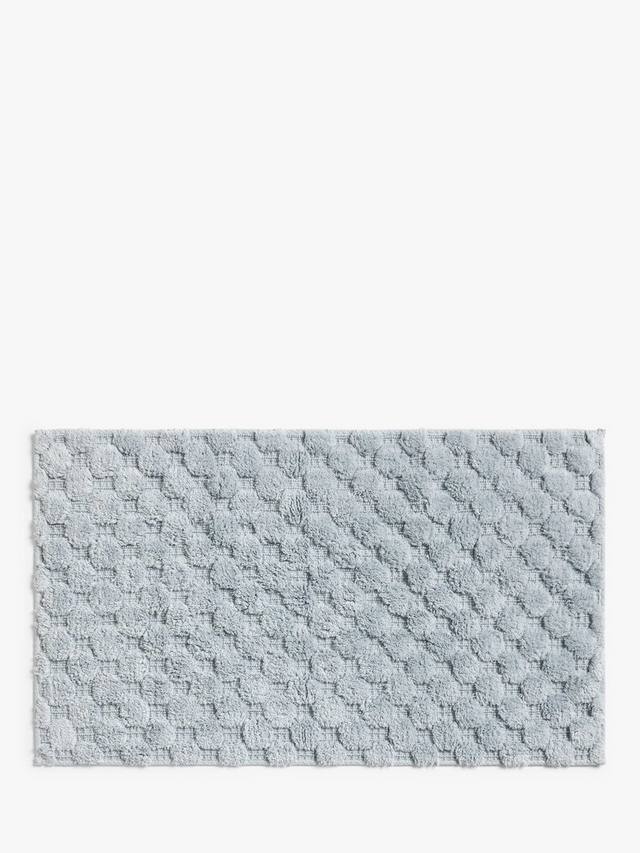 Глубоко рельефный ворс образует шестиугольный узор на этих удобных и впитывающих ковриках для ванной.