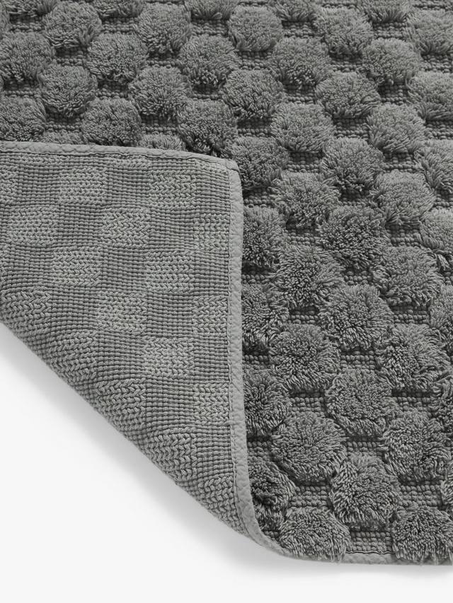 Глубоко рельефный ворс образует шестиугольный узор на этих удобных и впитывающих ковриках для ванной.