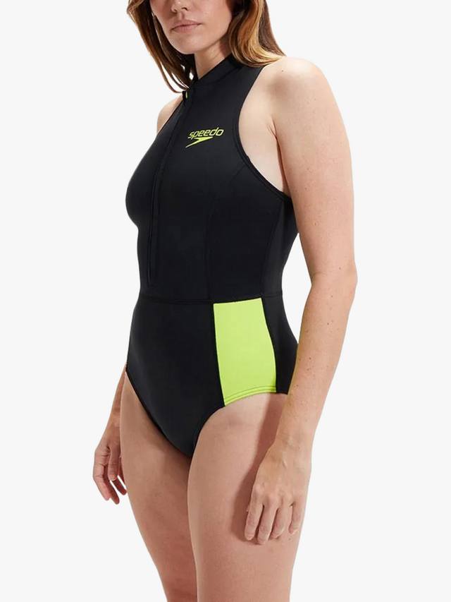 Оставайтесь в тепле во время плавания в холодной воде в этом стильном новом термокупальном костюме без рукавов. Изготовленный из лёгкого хлоропренового каучука, не содержащего нефтепродуктов, он обеспечивает такое же тепло, как неопрен, и обладает превосходной памятью формы, облегая тело, как вторая кожа. Идеально подходит для плавания в открытом море и паддлбординга: спинка-борцовка обеспечивает максимальную свободу движений в плечах и оснащена плоскими швами для комфортного плавания и гребли. Купальник выгодно подчеркивает фигуру, имеет высокий вырез горловины, желтые контрастные вставки и ярко-желтую молнию спереди для видимости под водой.