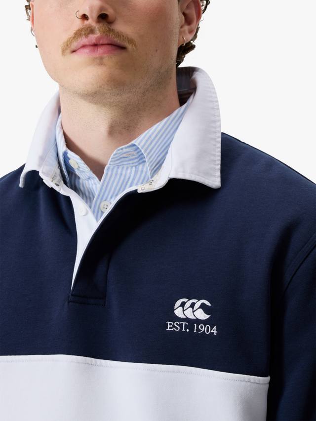 Хлопковый воротник-стойка со скрытой планкой, трикотажные манжеты и резинка на подоле создают структурированный вид, а вышитый логотип Canterbury на груди напоминает о спортивном наследии бренда.