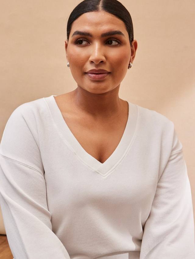 Эта толстовка с V-образным вырезом, выполненная из 100% хлопка, станет незаменимым элементом повседневного гардероба. Ребристый вырез горловины, манжеты и подол добавляют изюминку, делая её элегантной и удобной. Длинные рукава идеально подходят для любого сезона. Ткань с петельчатой изнанкой настолько комфортна, что вам захочется носить её снова и снова.