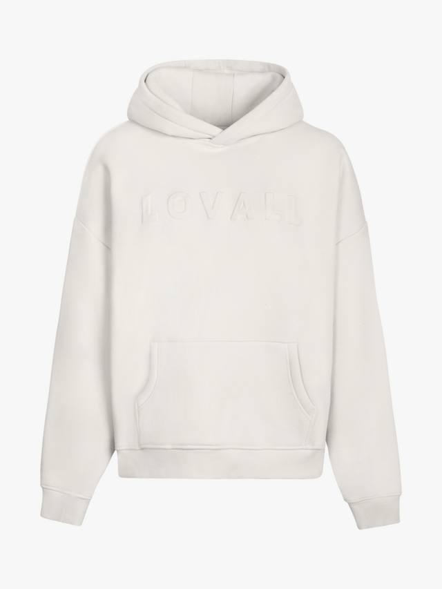 Окунитесь в супермягкую, плотную ткань с флисовой подкладкой. Свободный крой и спущенное плечо подчеркивают фигуру. Обратите внимание на детали, включая карман-кенгуру и ребристые манжеты и подолы. Тисненый логотип LOVALL добавляет стильности.