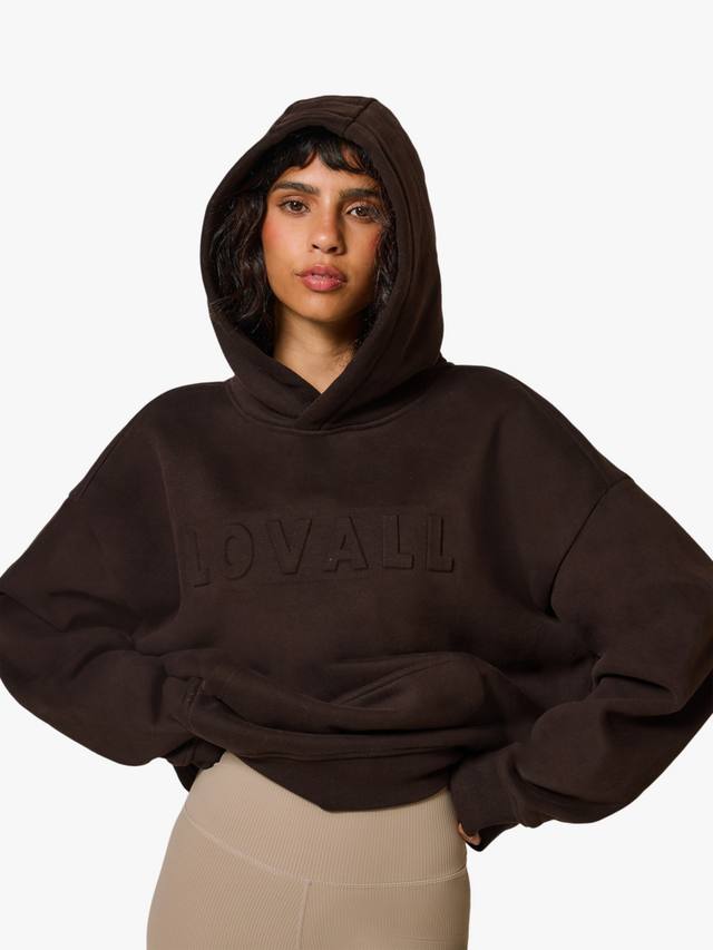 Окунитесь в супермягкую, плотную ткань с флисовой подкладкой. Свободный крой и спущенное плечо подчеркивают фигуру. Обратите внимание на детали, включая карман-кенгуру и ребристые манжеты и подолы. Тисненый логотип LOVALL добавляет стильности.