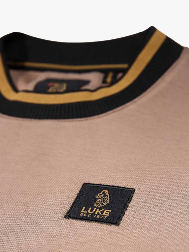 Эта премиальная толстовка от LUKE 1977 выполнена из мягкой хлопковой смеси и дополнена классическим ребристым воротником с полоской, напоминающей сотовую клетку. Образ дополняют ребристые манжеты и подол, а также фирменная тканая этикетка LUKE EST. 1977 на левой стороне груди.
