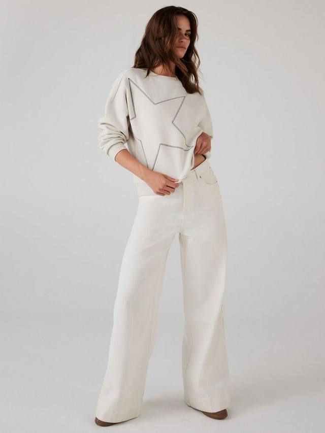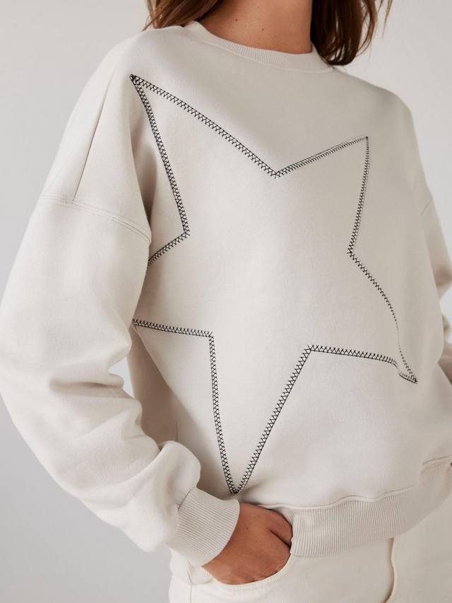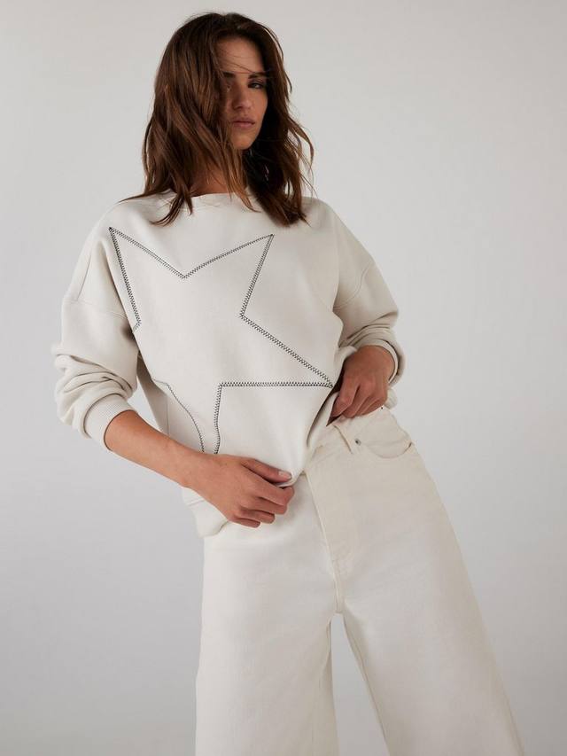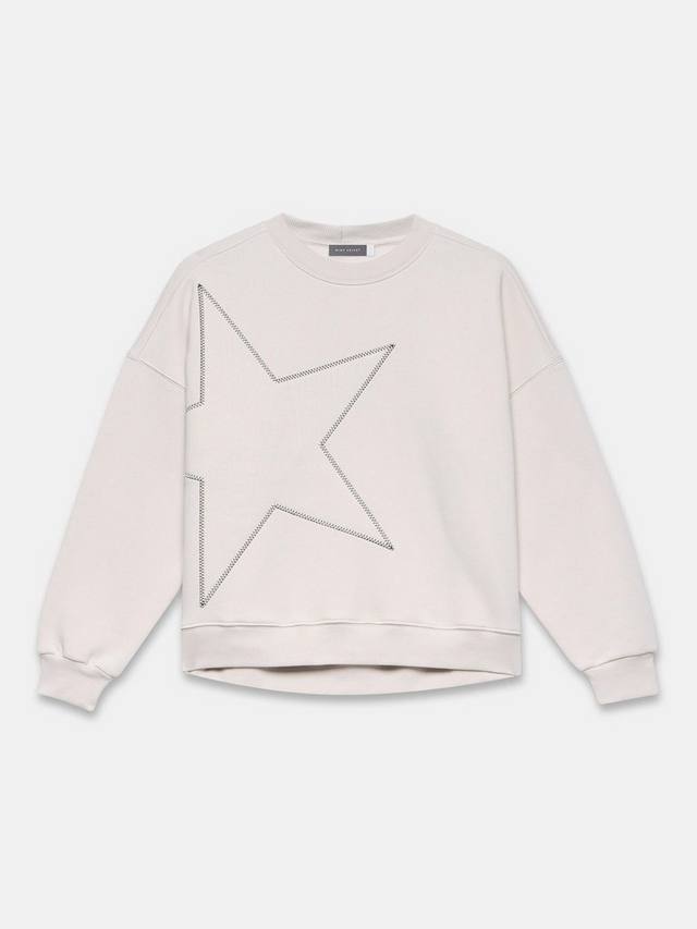 Свитшот с круглым вырезом, длинными рукавами, заниженной линией талии и рисунком в виде звезд.
