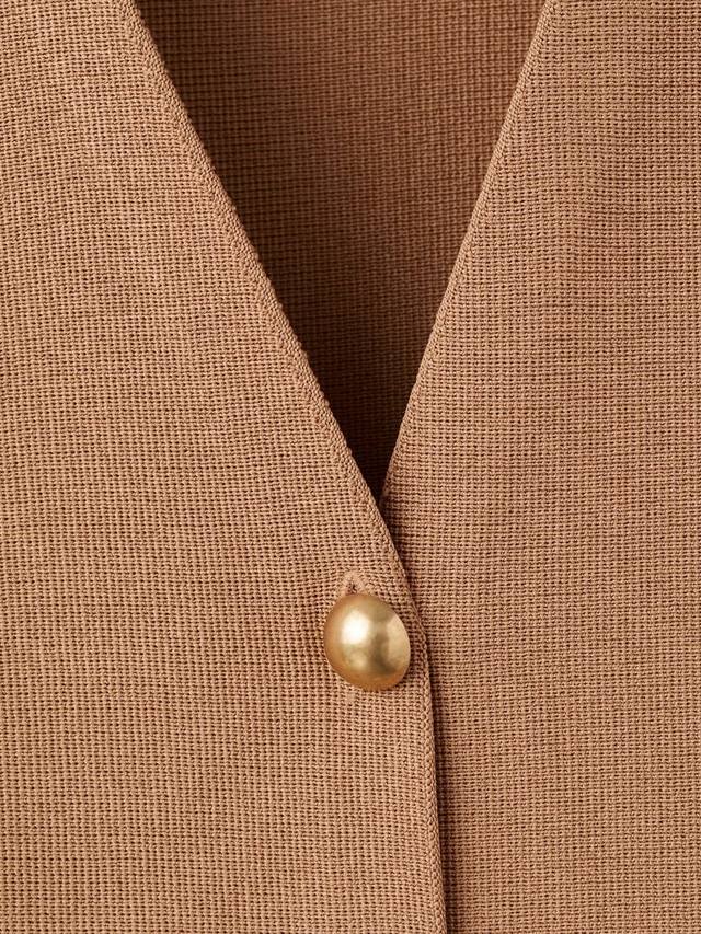 Эта элегантная куртка с V-образным вырезом станет ярким акцентом в вашем повседневном или деловом образе. Классический крой и застежка на пуговицы обеспечивают комфорт и универсальность, делая этот жакет идеальным выбором, если вы хотите выделиться по всем правильным причинам.