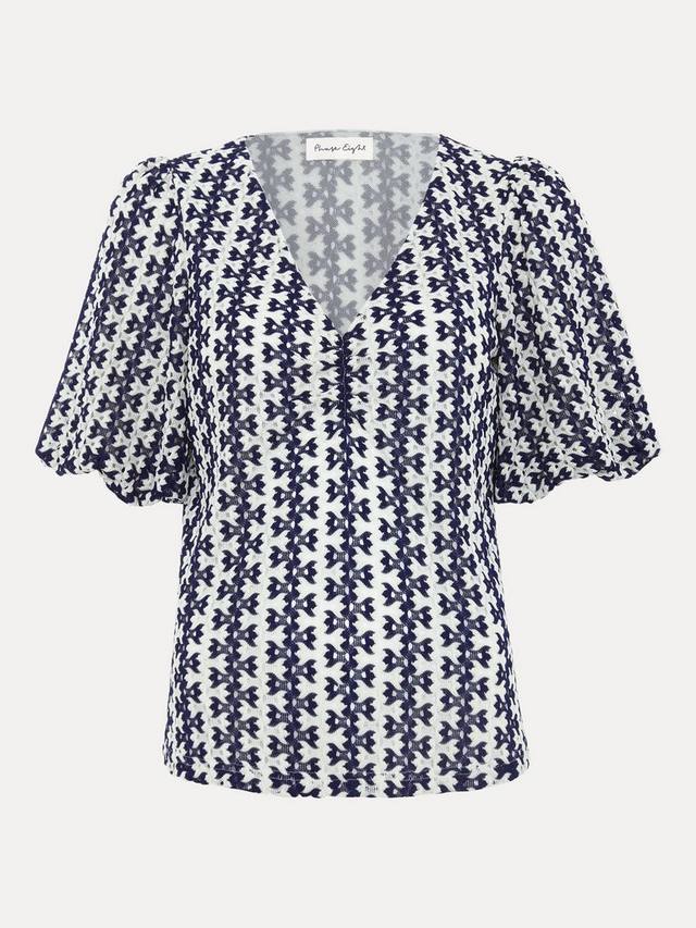 Этот топ, не требующий лишних усилий и элегантный, идеально подходит как для повседневного, так и для вечернего образа. Монохромный фактурный дизайн и рукава-буфы добавляют современности и интереса. Сочетайте с белыми джинсами и балетками для создания изысканного повседневного образа, а для вечернего — с чёрными брюками, каблуками и эффектными украшениями.