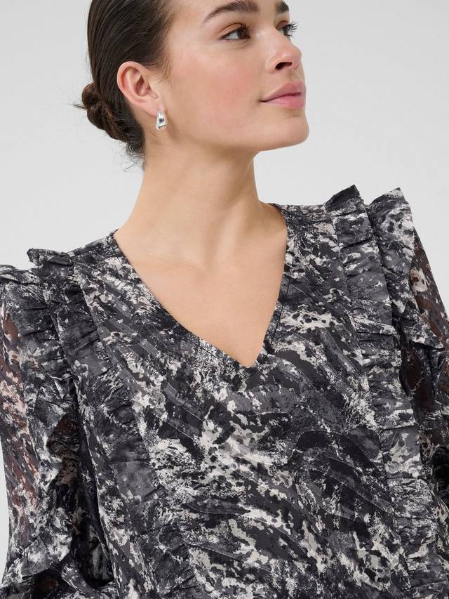 Блузка с абстрактным принтом от KAFFE пробуждает новые идеи для повседневного гардероба. Благодаря привлекательному V-образному вырезу и длинным рукавам она идеально подходит для создания интригующего и непринужденного образа в течение дня.