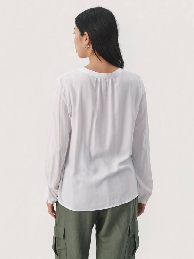 Эта блузка из второй части станет прекрасным дополнением к вашему гардеробу и предоставит бесконечные возможности для создания стильных образов. Блузка с круглым вырезом и длинными рукавами выполнена из лёгкой, но прочной ткани и станет незаменимой частью повседневного гардероба.