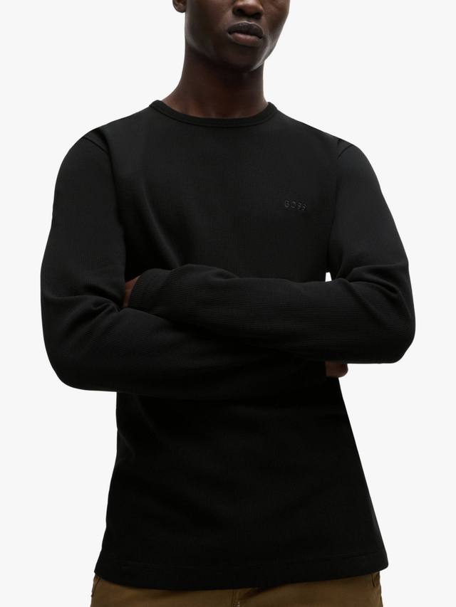 Удобный топ с длинными рукавами из вафельной ткани с добавлением хлопка от HUGO BOSS. Этот топ имеет классический крой и вышитый логотип на груди.