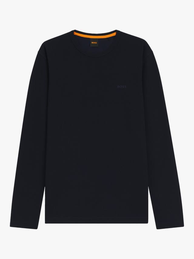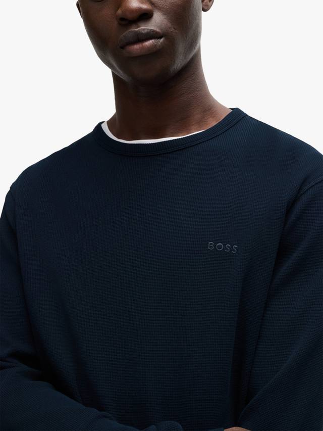 Удобный топ с длинными рукавами из вафельной ткани с добавлением хлопка от HUGO BOSS. Этот топ имеет классический крой и вышитый логотип на груди.