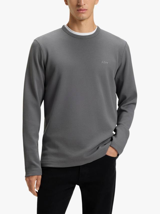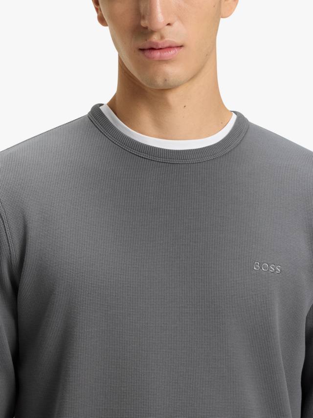 Удобный топ с длинными рукавами из вафельной ткани с добавлением хлопка от HUGO BOSS. Этот топ имеет классический крой и вышитый логотип на груди.
