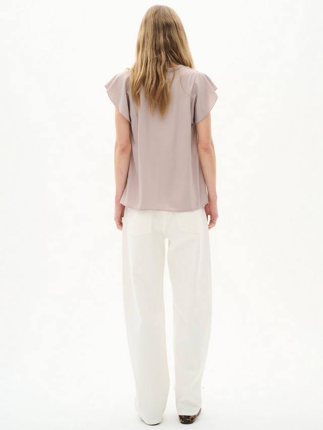 Топ Cidenza — простой и женственный, предлагающий бесконечные возможности для создания стильных образов. Он имеет V-образный вырез, узкий воротник-стойку, классический крой и шов по центру. Рукава — крой летучая мышь длиной до воротничка, а верх кроя — отрезной.