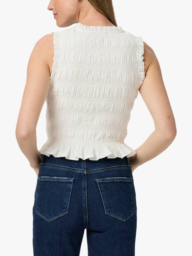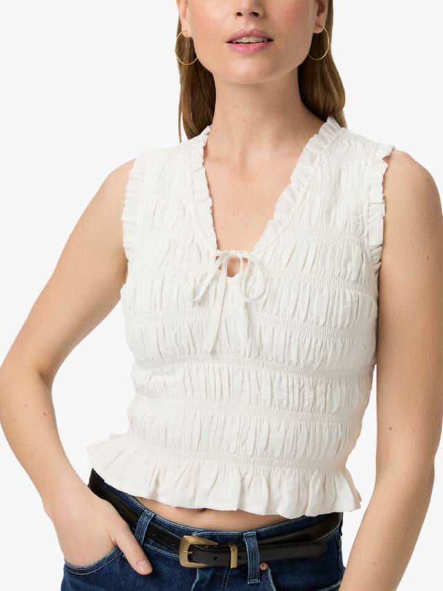 Этот топ без рукавов с присборенным лифом, выполненный из мягкой и легкой смеси хлопка и вискозы, имеет приталенный силуэт, V-образный вырез, завязку спереди и оборки по всему изделию. Топ Devi Top сочетается с любым оттенком денима в вашем гардеробе.