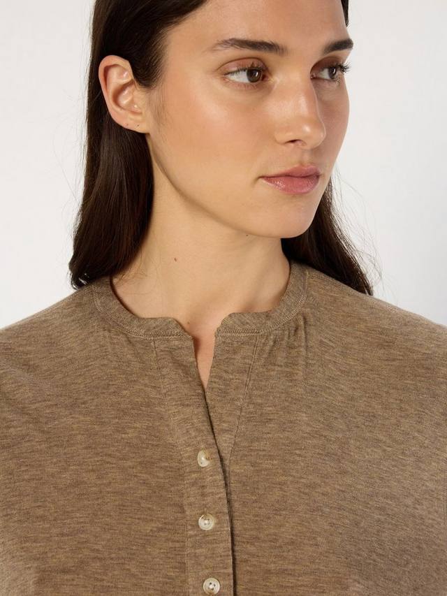 Вырез на пуговицах добавит очарования, а мягкий трикотаж обеспечит идеальную эластичность на каждый день.