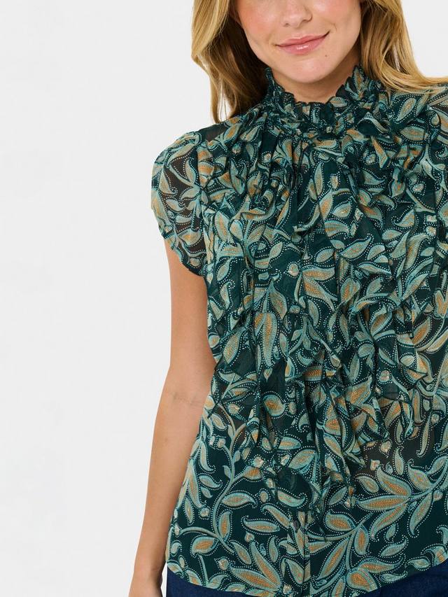 Блузка прямого кроя из Сен-Тропе из жатой ткани. Высокий ворот и короткие рукава украшены цветочным принтом, вдохновлённым природой. Повседневная, удобная и непринуждённо шикарная.