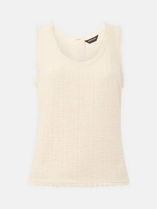 Эта майка от Whistles, ставшая неотъемлемой частью гардероба, выполнена из легкой ткани букле и имеет круглый вырез с бахромой.