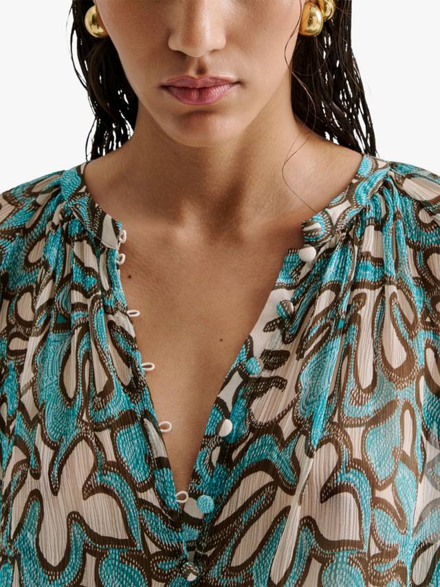 Шёлковая блузка Malina будет привлекать внимание от рассвета до заката. Мягкая драпировка и оригинальные детали, выполненные с абстрактным узором и элегантным V-образным вырезом, обеспечат вам незабываемый день, будь то прогулка или мгновение покоя.