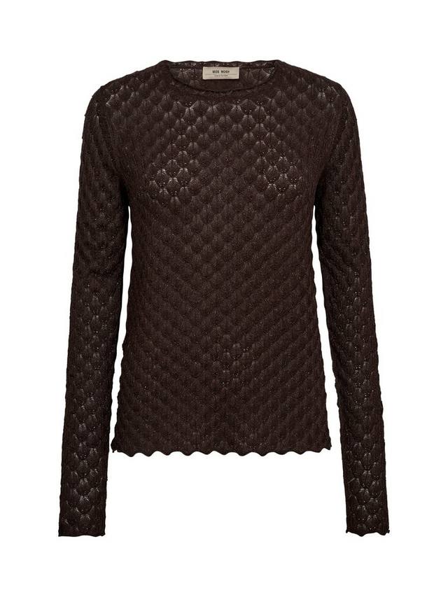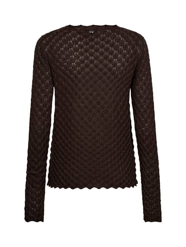 Этот трикотажный топ с блестящими деталями имеет классический крой и отделку с фестончатым узором, что делает его похожим на вязаное кружево. Красивый высокий вырез горловины и нижний край украшены фестончатым узором, что придает ему женственности. Сочетайте его с классическим кроем.