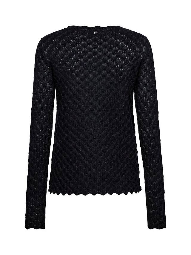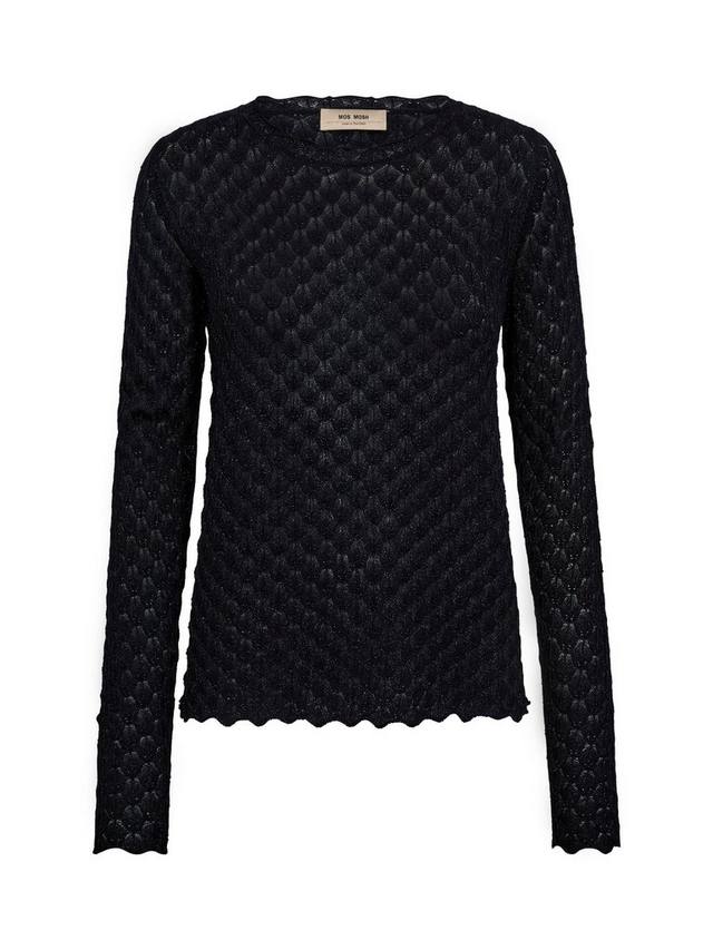 Этот трикотажный топ с блестящими деталями имеет классический крой и отделку с фестончатым узором, что делает его похожим на вязаное кружево. Красивый высокий вырез горловины и нижний край украшены фестончатым узором, что придает ему женственности. Сочетайте его с классическим кроем.