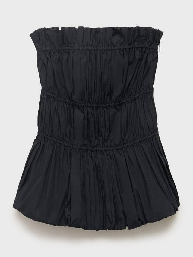 Этот топ без бретелек с баской от Mango, подчеркивающий вашу естественную талию, выполнен из мягкого хлопка с рюшами.