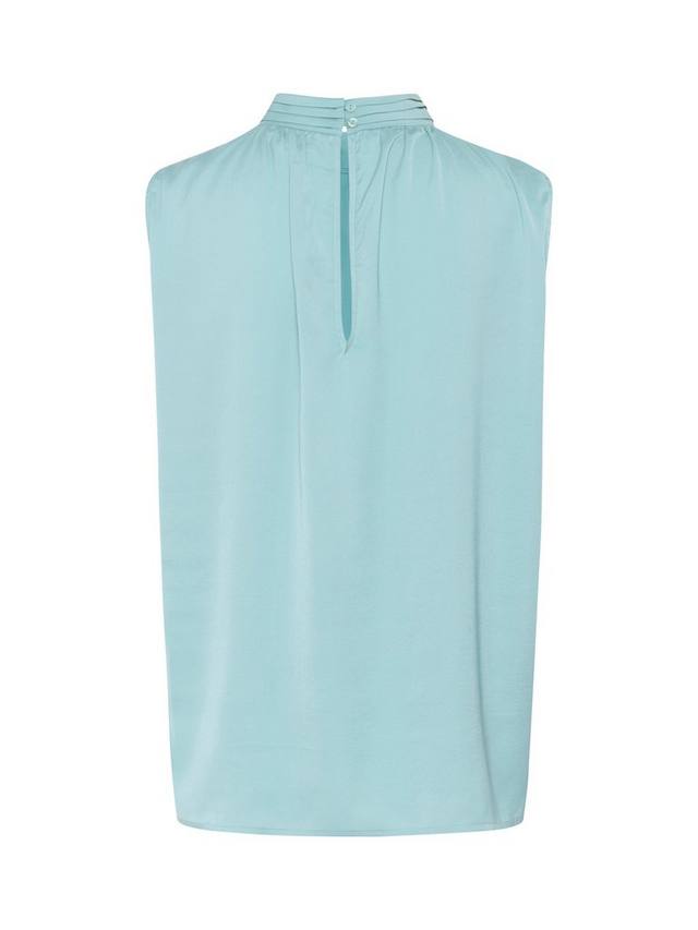 Эта блузка без рукавов из Сен-Тропе выполнена из мягкого атласа и имеет присборенный высокий воротник с застежкой на пуговицы сзади.