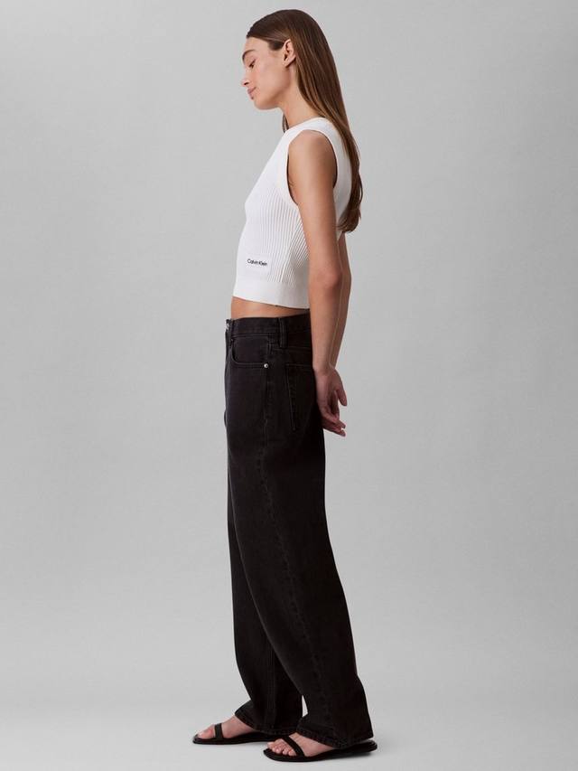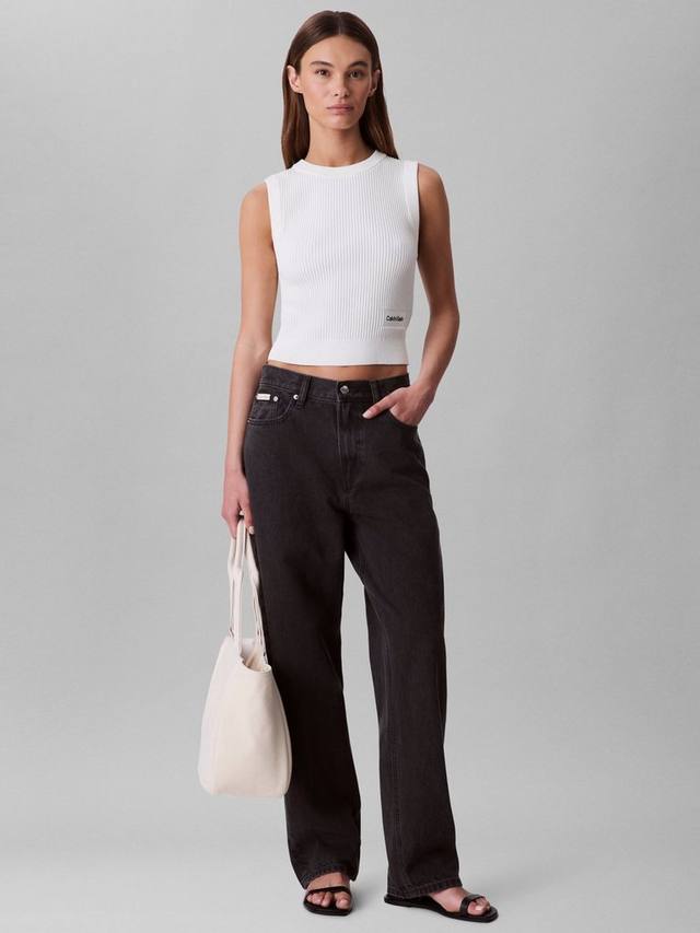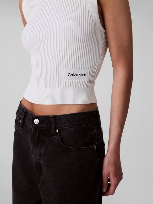 Этот ребристый топ без рукавов с круглым вырезом от Calvin Klein готов защитить от холода.