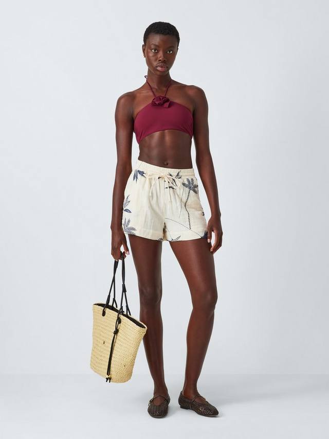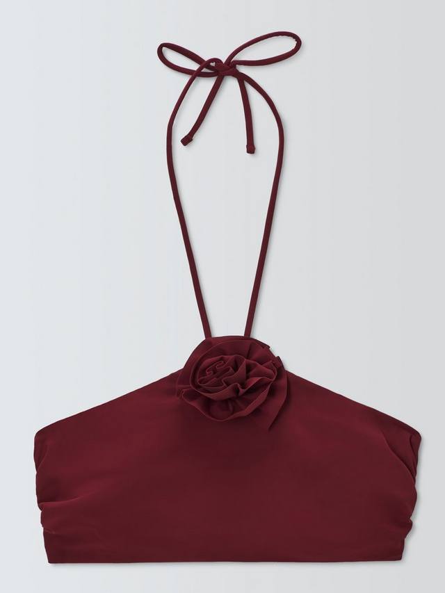 Наш бикини-топ Las Flores насыщенного красного цвета на подкладке, с завязкой-халтером и цветочным декором спереди по центру. Он сшит из ткани Eurojersey – материала, произведенного в Италии. Он устойчив к хлору, быстросохнущего и имеет защиту от ультрафиолета – идеально подходит для купальников. Сочетайте с подходящими плавками бикини с высокой талией.