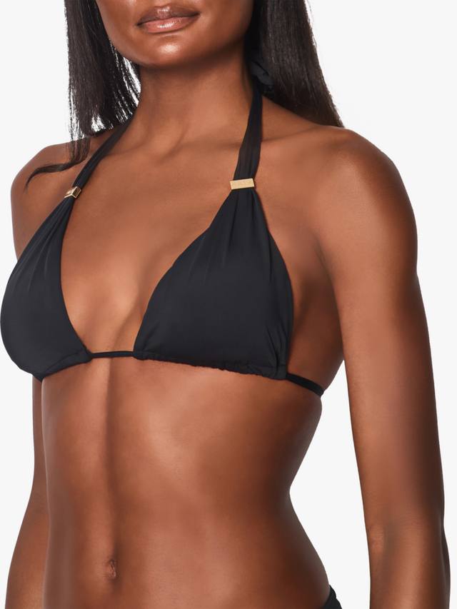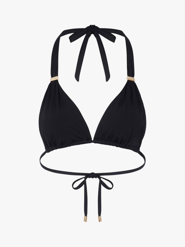 Полностью регулируемый топ-халтер со скользящей отделкой, завязками на шее и спине, средней/легкой поддержкой.
