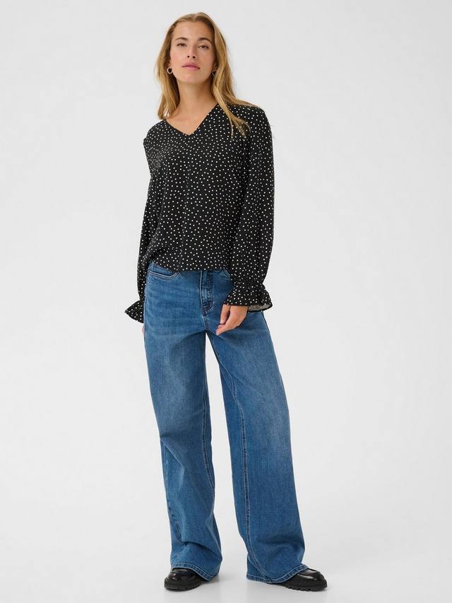 Эта блузка от KAFFE станет прекрасным дополнением к вашему гардеробу и придаст ему необходимую нотку 50-х. Классический крой, V-образный вырез и длинные рукава, она сшита из лёгкой, но прочной смесовой ткани и идеально впишется в ваш повседневный гардероб.