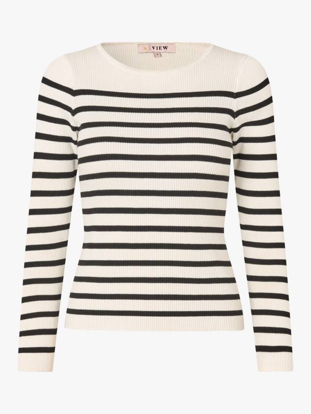 Трикотажная блузка Rib stripe выполнена в рубчик и имеет полосатый крой. Блузка облегает фигуру, имеет круглый вырез горловины и длинные рукава. Размер соответствует заявленному.