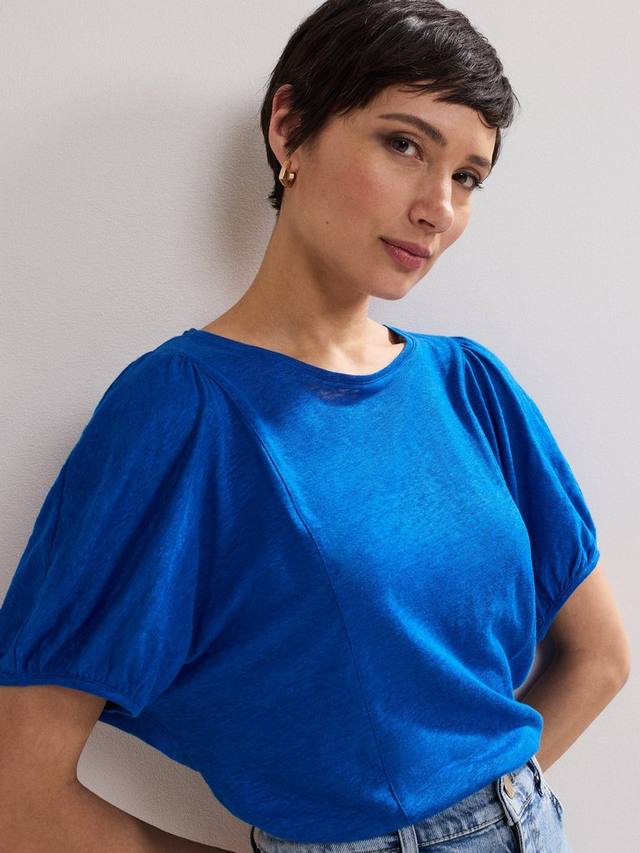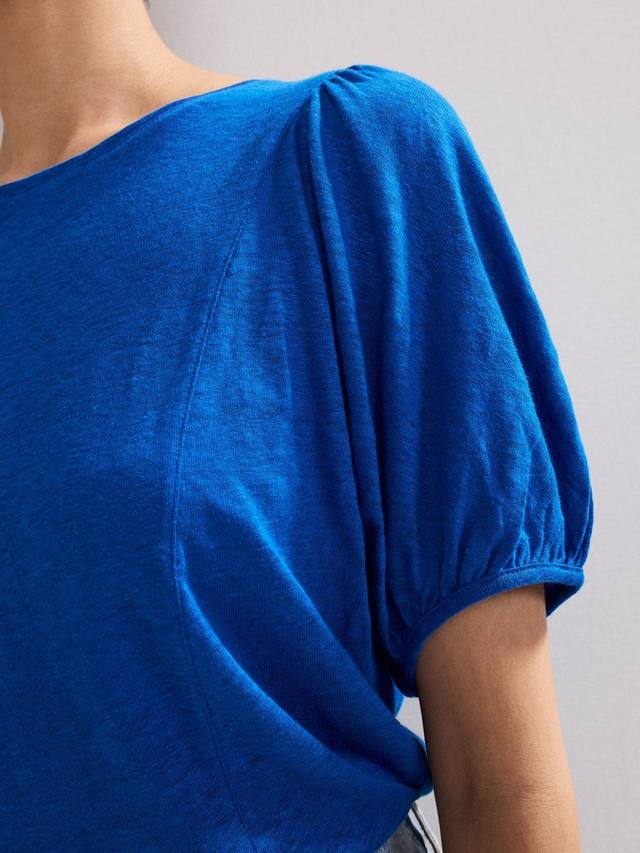 Эта футболка из 100% льна обеспечивает лёгкость и воздухопроницаемость, поэтому ваш летний гардероб просто обязан быть в центре внимания. Современные детали, такие как рукава-фонарики и открытые швы, делают эту классическую футболку ещё более привлекательной. Она будет легко сочетаться с любыми вашими любимыми вещами.