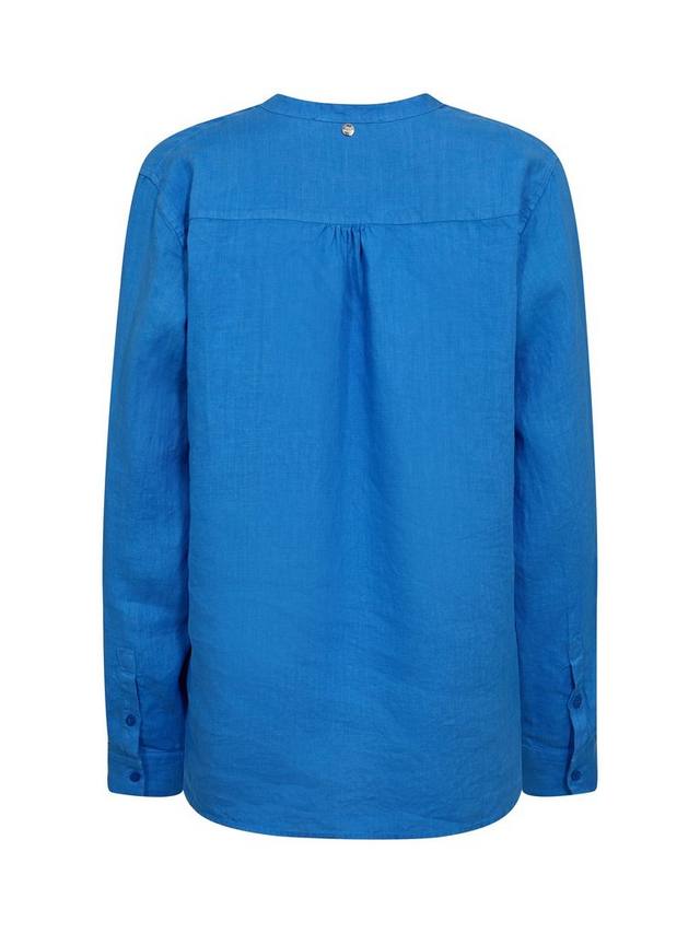 Эту блузку так легко надеть практически с чем угодно. Она сшита из льна и имеет классический крой с застежкой на пуговицы спереди, манжетами на пуговицах и встречными складками сзади. Носите её свободно, заправив в джинсы или шорты.