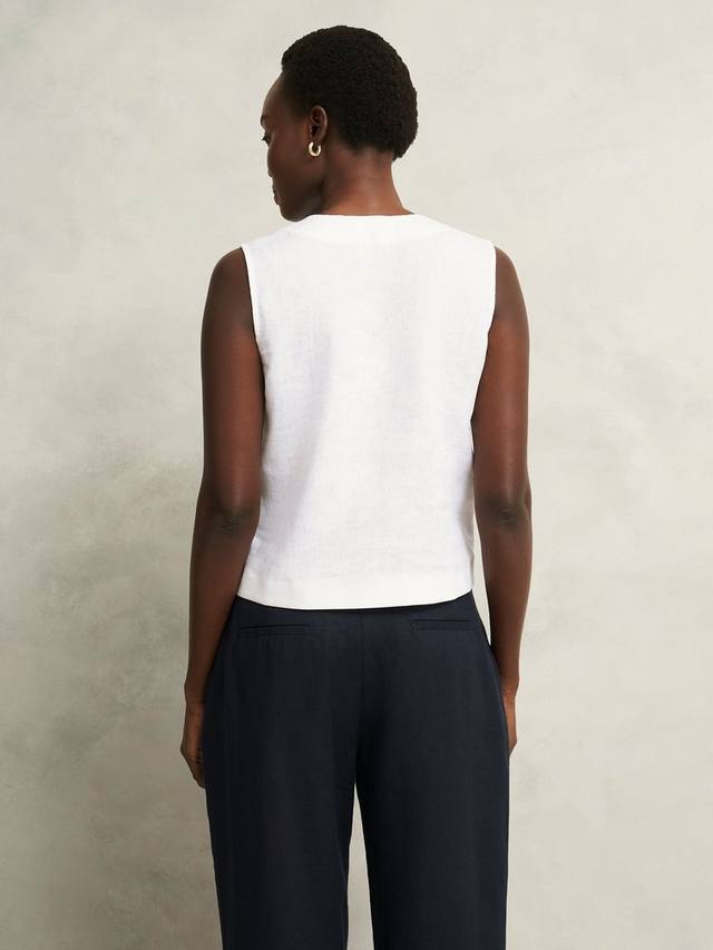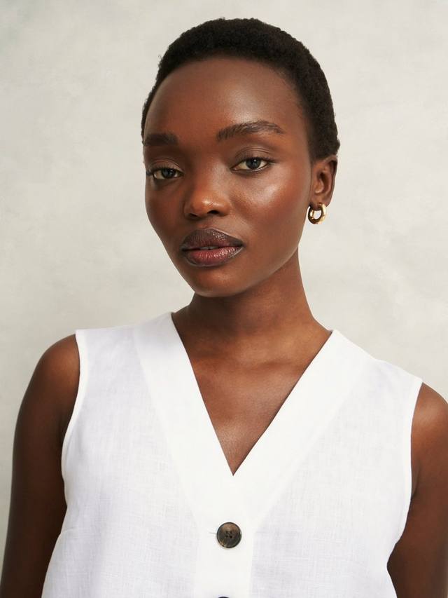Льняной топ Kaylee, воплощающий повседневную простоту, отсылает к моде на жилеты, предлагая непринужденную интерпретацию классического силуэта.