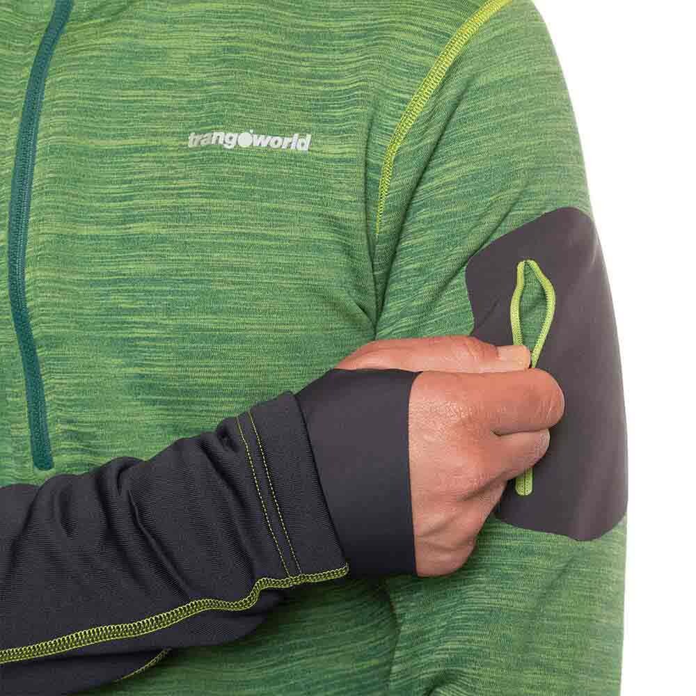 Она имеет высокий воротник со средней длиной воротника. застежка-молния, позволяющая контролировать необходимое количество воздуха, длинные рукава, манжеты из лайкры и отверстие для большого пальца, карман на молнии на рукаве и приталенный крой, позволяющий свободно и без давления двигаться в этой термофутболке.