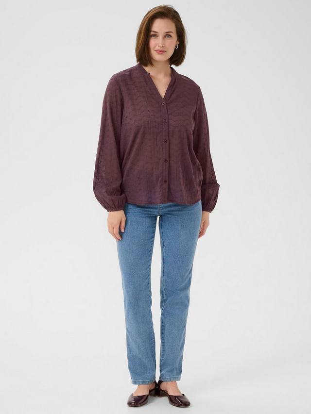 Блузка KAFFE из 100% хлопка сочетает в себе комфорт и стиль. V-образный вырез и длинные рукава – это отсылка к классическому стилю, переосмысленному для удобства на каждый день.