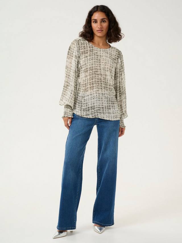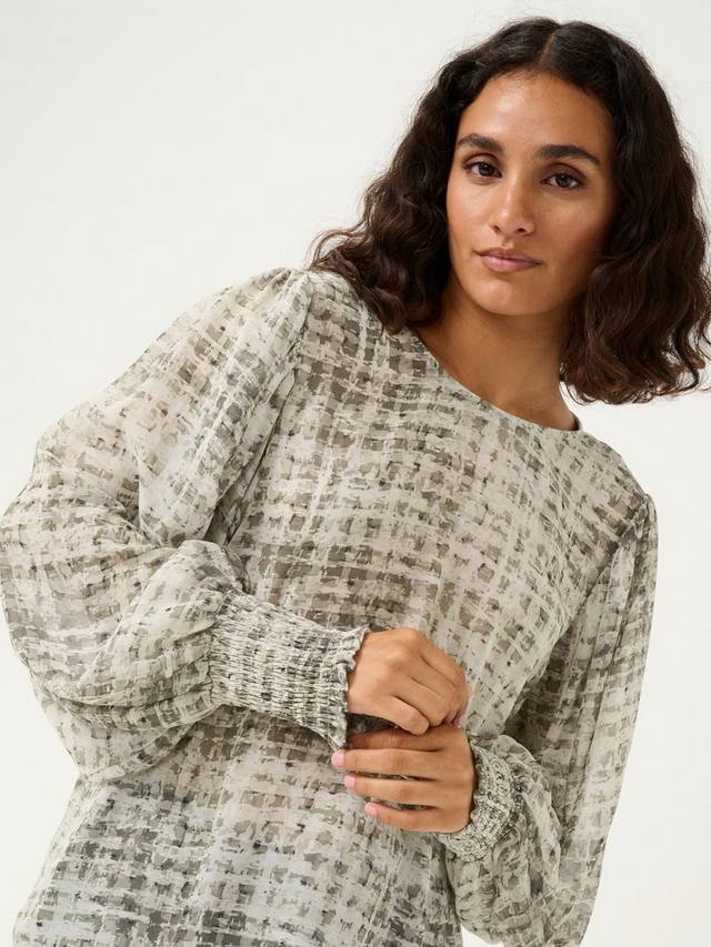 Блузка Trinike — лёгкий и струящийся топ с модным принтом, который отлично дополнит любой наряд. Круглый вырез, классический крой и вырез на бедрах. Длинные, объёмные рукава-фонарики собраны на широкую манжету.,/p