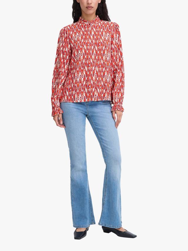 Эта блузка от ICHI с насыщенным абстрактным принтом – отличный выбор. Скромный крой с высоким воротом и длинными рукавами. Блузка выполнена из лёгкой, но прочной ткани, обеспечивающей долговечность и комфорт в дневное время.