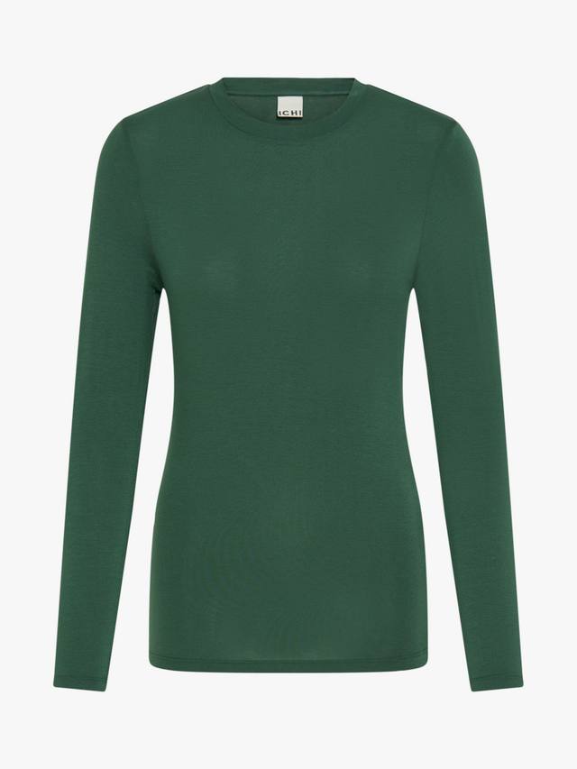 Повседневная футболка от ICHI из смеси лёгкой вискозы. Круглый вырез горловины и длинные рукава. Однотонная расцветка подходит к любой одежде. Идеальный вариант для вашего повседневного гардероба.