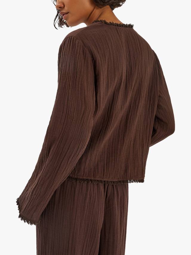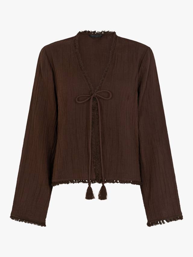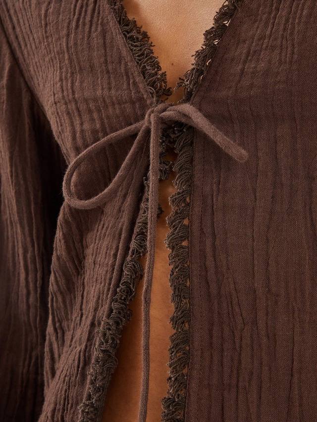 Этот топ с V-образным вырезом, выполненный из дышащего хлопка, завязывается спереди и украшен кисточками. Доступны подходящие брюки.